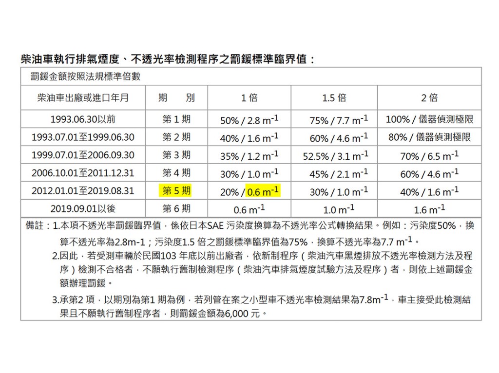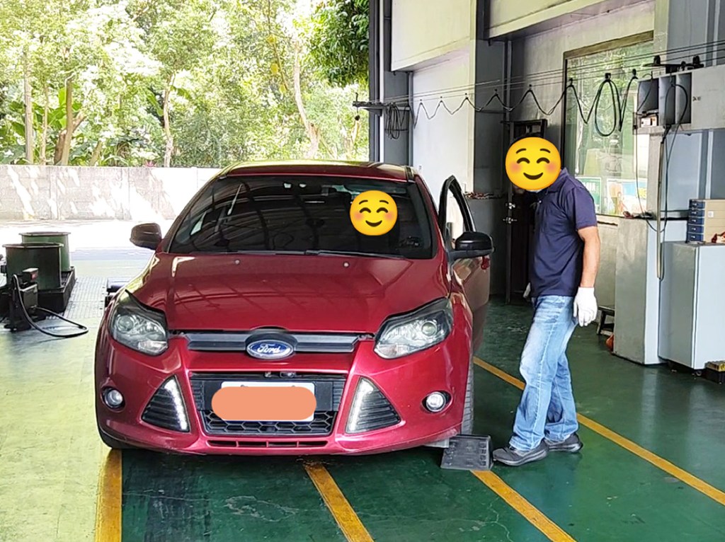Ford focus 3屬於第五期車別,標準是0.6m以下,我的不透光率在0.01m,數字超漂亮,技師說他驗柴油排氣到現在還沒遇過ford測失敗過,因為這款車出廠時已經內建過濾系統,除非故障,不然都能驗過。